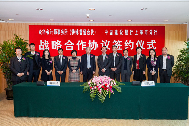 2014年3月24日,众华会计师事务所(特殊普通合伙)与中国建设银行上海市分行举行《战略合作协议》签约仪式。众华会计师事务所首席合伙人孙勇、建行上海市分行大客户五部纪万林总经理分别致辞,并代表双方签署了《战略合作协议》。双方就未来更加紧密地合作、优势互补,利用双方的平台和资源,为对方发展业务提供支持和帮助,达到资源共享、合作共赢等方面达成共识。