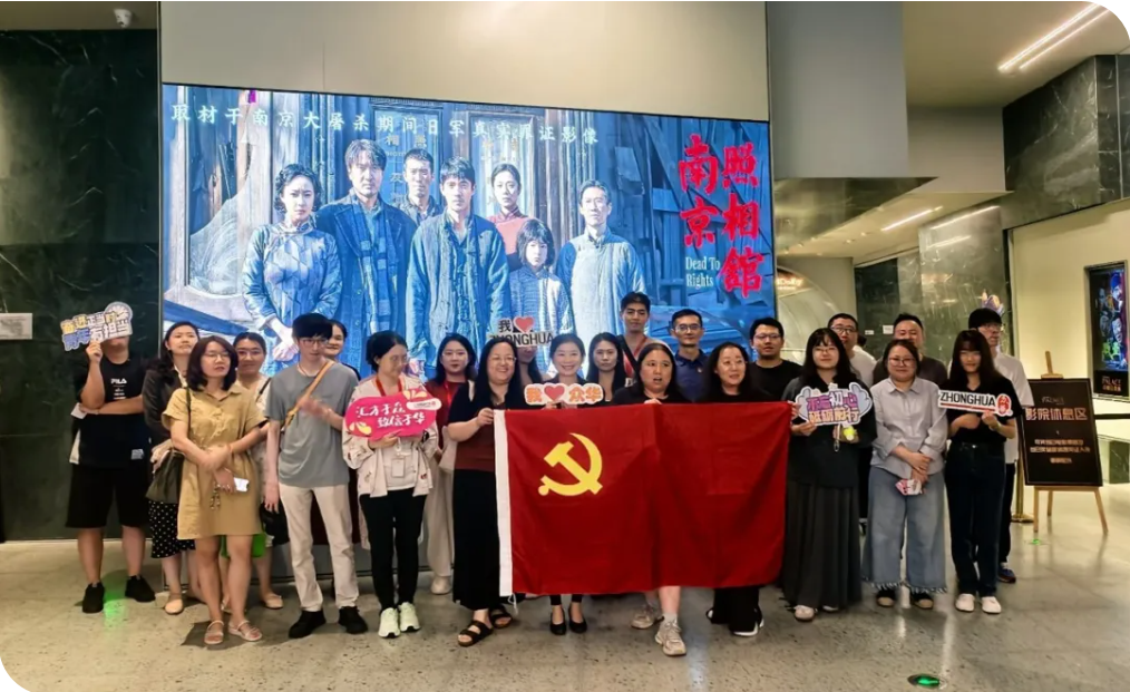 2025 年 8 月 8 日,众华党总支部联合工会、团委,组织了一场意义非凡的活动,带领党员、群众和团员共计 70 人一同观看了战争历史电影《南京照相馆》。这部影片以其深刻的历史背景、动人的故事情节,给每一位观影者带来了心灵的震撼与洗礼。